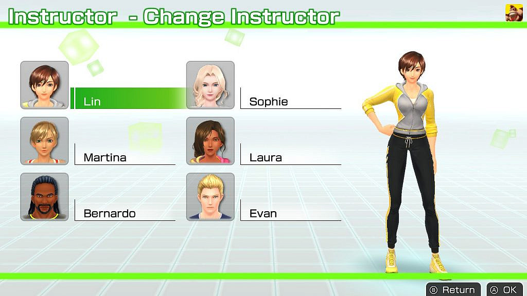 The game lacks content in other sections. You can choose free training or basic training to have more control in the content of your workout, but the daily workout is the fastest and most optimized workout you can have in this game. Punching in rhythm is fun, but the game has only 20 cheap instrumental versions of popular pop songs like Justin Bieber’s “Baby” and Lady Gaga’s “Bad Romance”. The small selection of songs makes the game feel repetitive in the long run. There are only six instructors to choose from and the only reward of completing a workout is either to unlock one of the 20 songs or clothing for one of the instructors. What makes this game even more hollow experience is the lackluster graphics and animations of the instructors and background. The game doesn’t need to be good-looking for an exercising game like this, but the graphics look outdated and the animations feel clunky to follow. These poorly made sections about the game make the gameplay experience quite hollow, and the game itself feels disappointing.