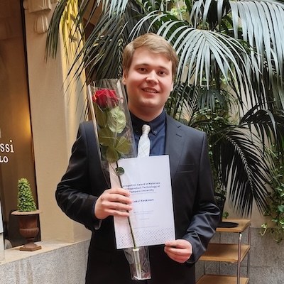 Huge congratulations to Aleksi for receiving a recognition award for his MSc thesis, Characterization of Biopolymer Blends Used in Extrusion Coating, granted by the Finnish Forest Products Engineers’ Association!