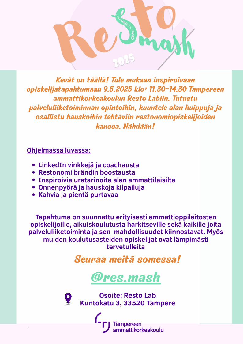 Tule mukaan inspiroivaan opiskelijatapahtumaan 9.5.2025 TAMKin Resto Labiin!