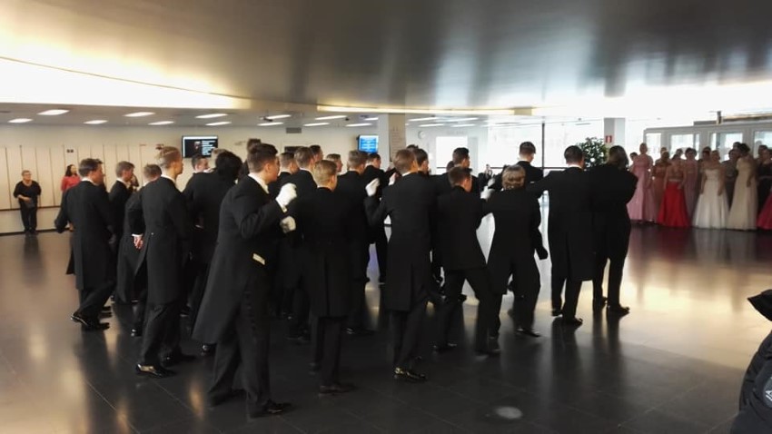 Wanhojen juhla oli 15.2. Norssin lukion wanhat tanssivat omalle koululleen ja yliopistoyhteisölle päärakennuksen aulassa klo 13 lähtien.