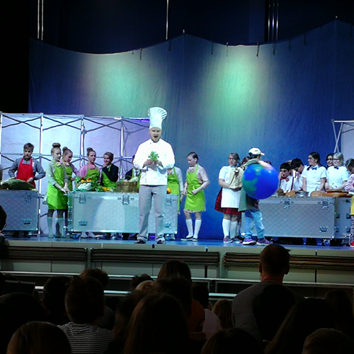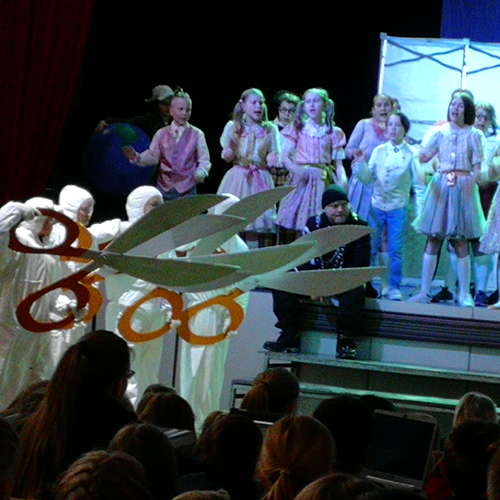 Koulumme 5a ja 6c -luokat esittivät yhdessä ammattilaisten kanssa Ihmepoika A -koululaisoopperan 4.4.2018.