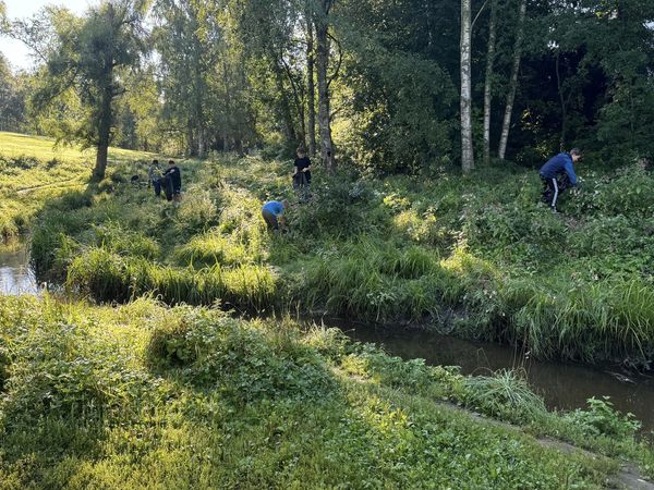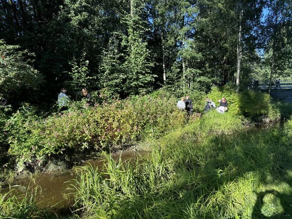 Norssin kuudesluokkalaiset olivat toisella kouluviikolla elokuussa talkoissa Vihiojalla. Kitkimme porukalla jättipalsamia, joka on nopeasti leviävä vieraslaji.