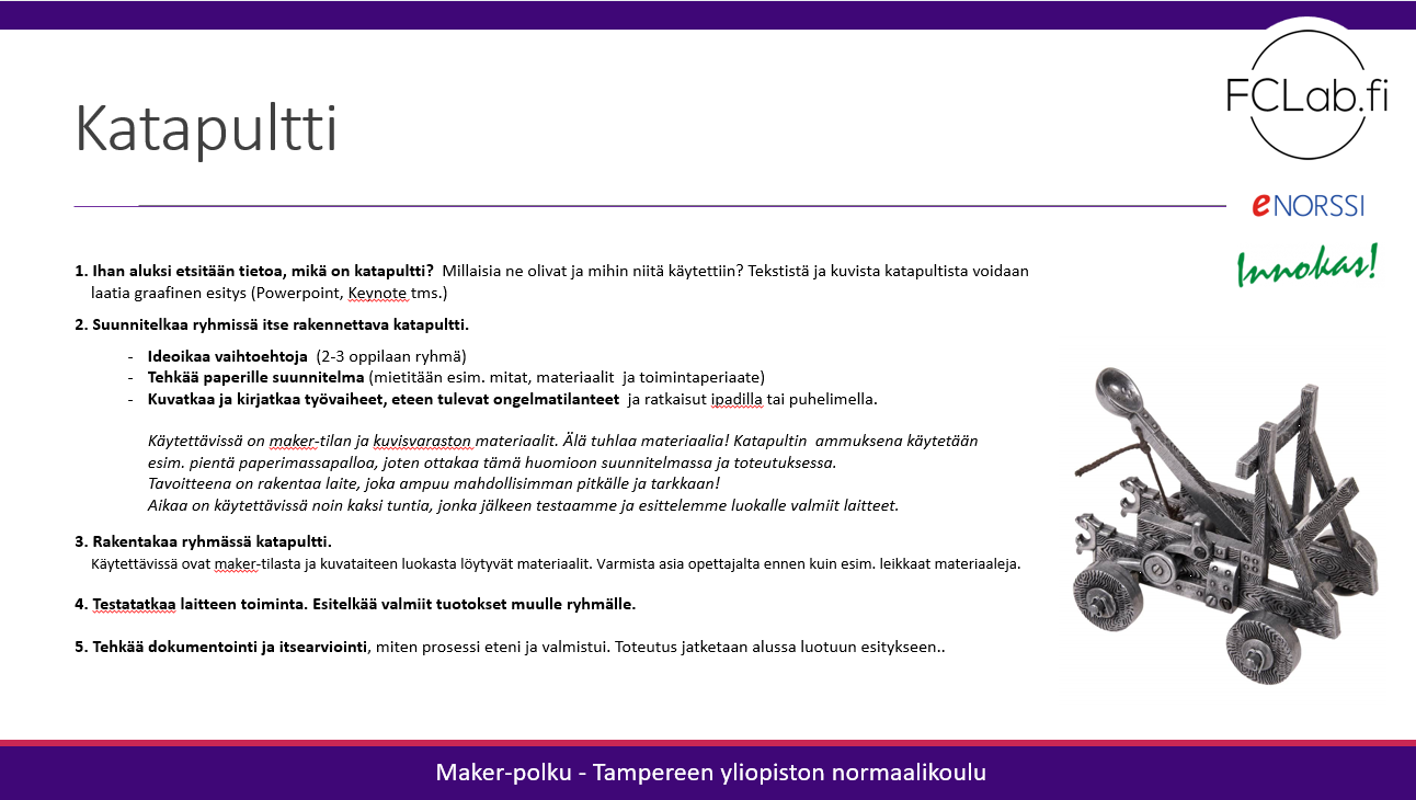 Tässä tehtävässä suunnitellaan ja toteutetaan katapultti.