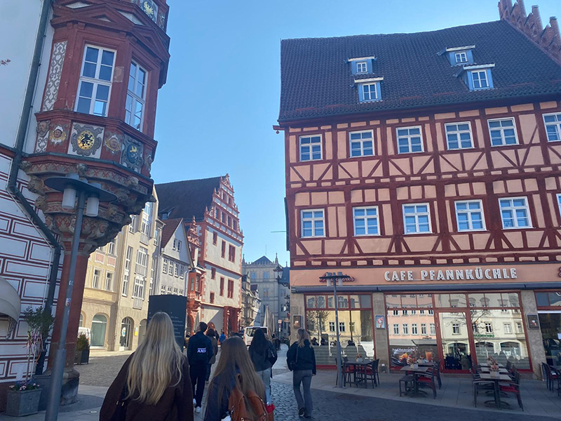 Viikon aikana Saksassa tutustuttiin paitsi Sonnebergin kaupunkiin myös Baijerin puolella Coburgiin sekä Nürnbergiin. Retkeilimme myös entisellä Itä- ja Länsi-Saksan rajalla sijaitsevalla luonnonsuojelualueella Grünes Bandilla paikallisen oppaan johdolla. Retkellä kuulimme jaetun Saksan historiasta ja ylitimme ennen tarkasti vartioidun raja-alueen. Tietysti osallistuimme myös koulutunneille sekä tutustuimme koulun lasinpuhallusopetukseen Lauschassa ja pääsimme puhaltamana omat joulupallomme. Belgiassa puolestaan tutustuimme Seraigniin, Liègeen sekä pääkaupunki Brysseliin opiskelijoiden ja opettajien vetämillä opastuksilla. Keskiviikkona vietimme koko päivän Brysselissä, jossa päivän ehdoton kohokohta oli vierailu Euroopan Parlamenttiin sekä herkullisten vohveleiden syöminen. Torstaina pääsimme tutustumaan myös Seraignin artesaaniperinteeseen perinteisellä lasinpuhallusalueella. Molemmissa kohteissa ohjelmaan kuului myös kohdekieliset Suomen, Tampereen ja Norssin esittelyt koulun oppitunnilla.