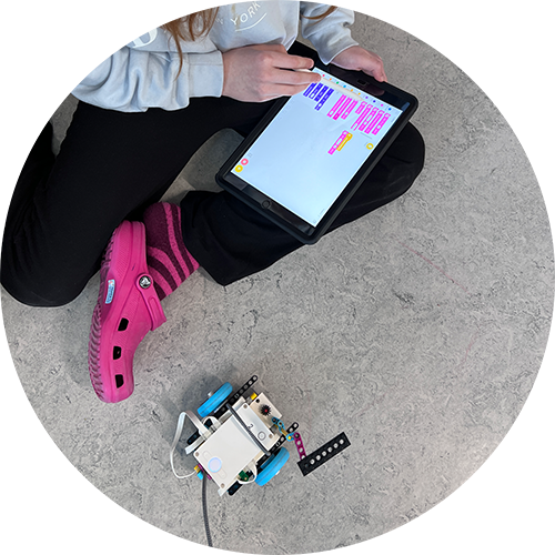 Oppilaat ovat rakentaneet kevään aikana omat kulkuneuvot, joiden avulla on harjoiteltu ohjelmoinnin perusteita. Osa oppilaista on käyttänyt rakentamisessa Legon rakennusohjeita ja osa on rakentanut ilman ohjeita. Lattiaan on teipattu ratoja, joita ohjelmoiden on opiskeltu moottorien toimintaa ja liikkumiseen tarvittavia komentoja. On ollut hämmästyttävää seurata, kuinka nopeasti oppilaat ottavat uusia asioita haltuun tälläkin alueella.