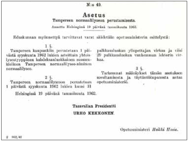 Tampereen yliopiston normaalikoulun 60-vuotisjuhla 5.5.2023
