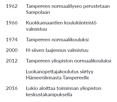 Tampereen yliopiston normaalikoulun 60-vuotisjuhlaa vietettiin hotelli Tammerissa 5.5.2023. Juhlaan on monta aihetta: erityisesti 60 vuotta täyttänyt koulumme, toisaalta myös 10 vuotta on tullut kuluneeksi Hämeenlinnan luokanopettajakoulutuksen siirtymisestä Tampereelle. Samaan aikaikkunaan osuu lisäksi lukiomme menestyneen Business Norssi -linjan 10 vuotistaival.