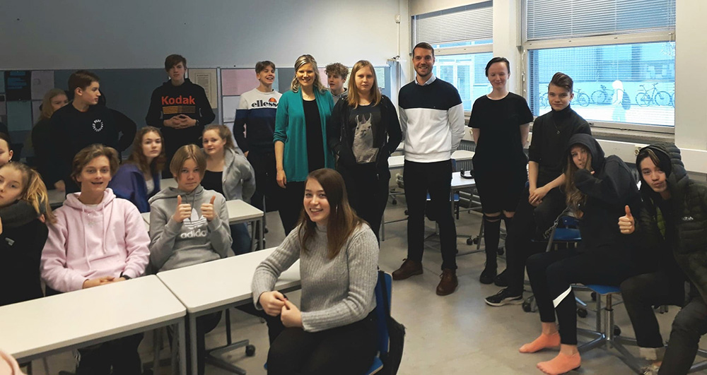 Tammikuun viimeisenä torstaina osa 9. luokista sai vieraikseen yhteiskuntaopin tunneille kansanedustajat Sofia Vikmanin ja Jouni Ovaskan. Lyhyitten alustusten jälkeen oli varattu tilaa kysymyksille ja keskustelulle, mikä olikin niin vilkasta, että oppilaat osin luopuivat välitunnistaan yhteisen keskustelun hyväksi.
