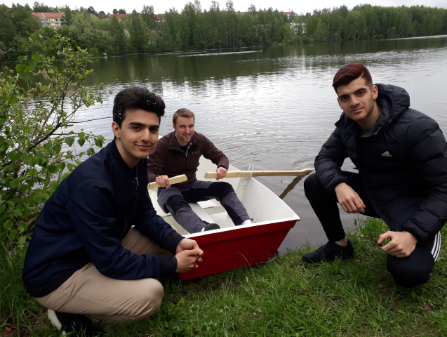 Tampereen yliopiston normaalikoulun 9D:n oppilaat Ali Al-Azzawi ja Yaser Rahim ovat veneensä jo vesille työntäneet. Eikä se ole mikä tahansa vene, vaan poikien itsensä tekemä koulun valinnaisella pitkällä käsityön kurssilla.