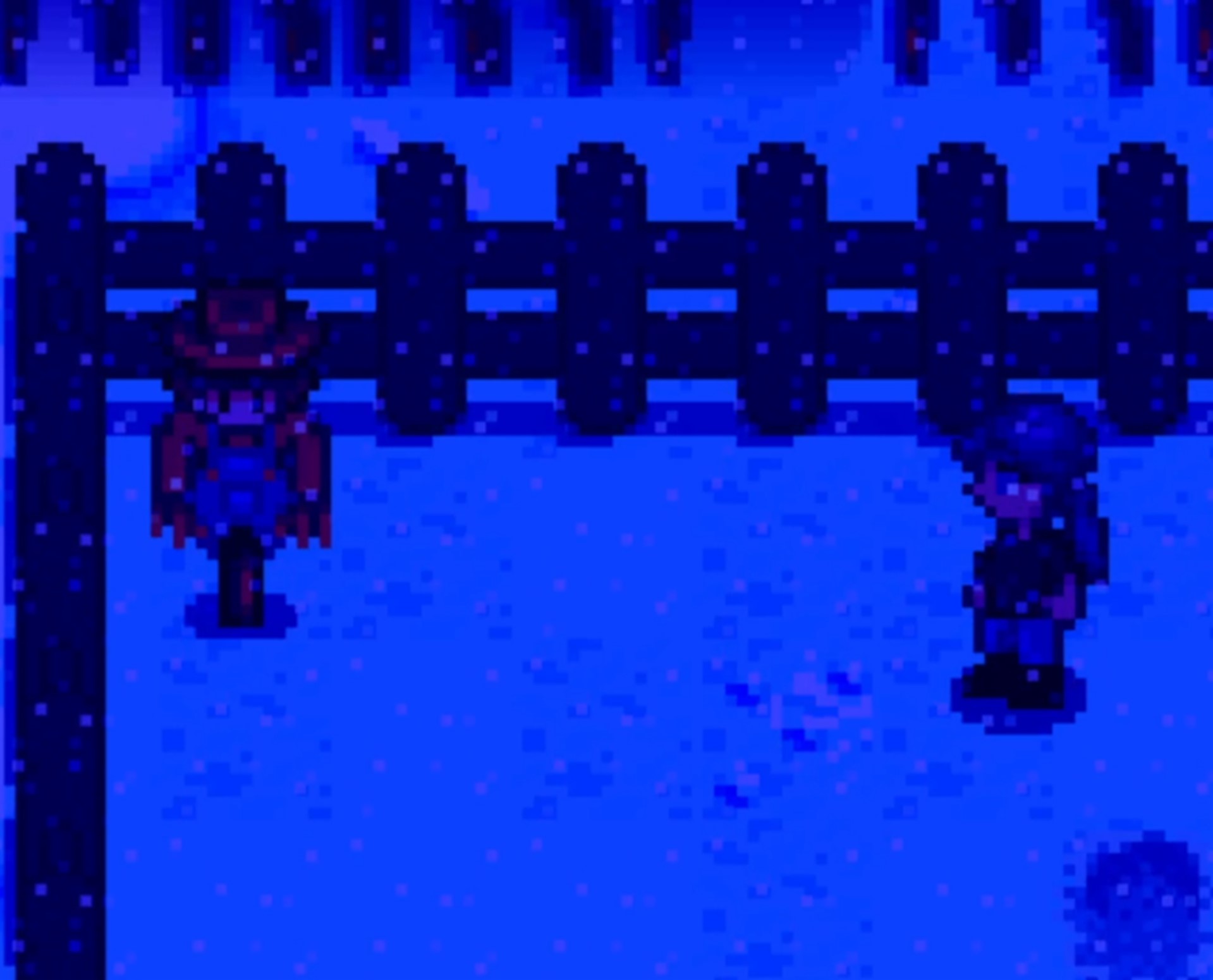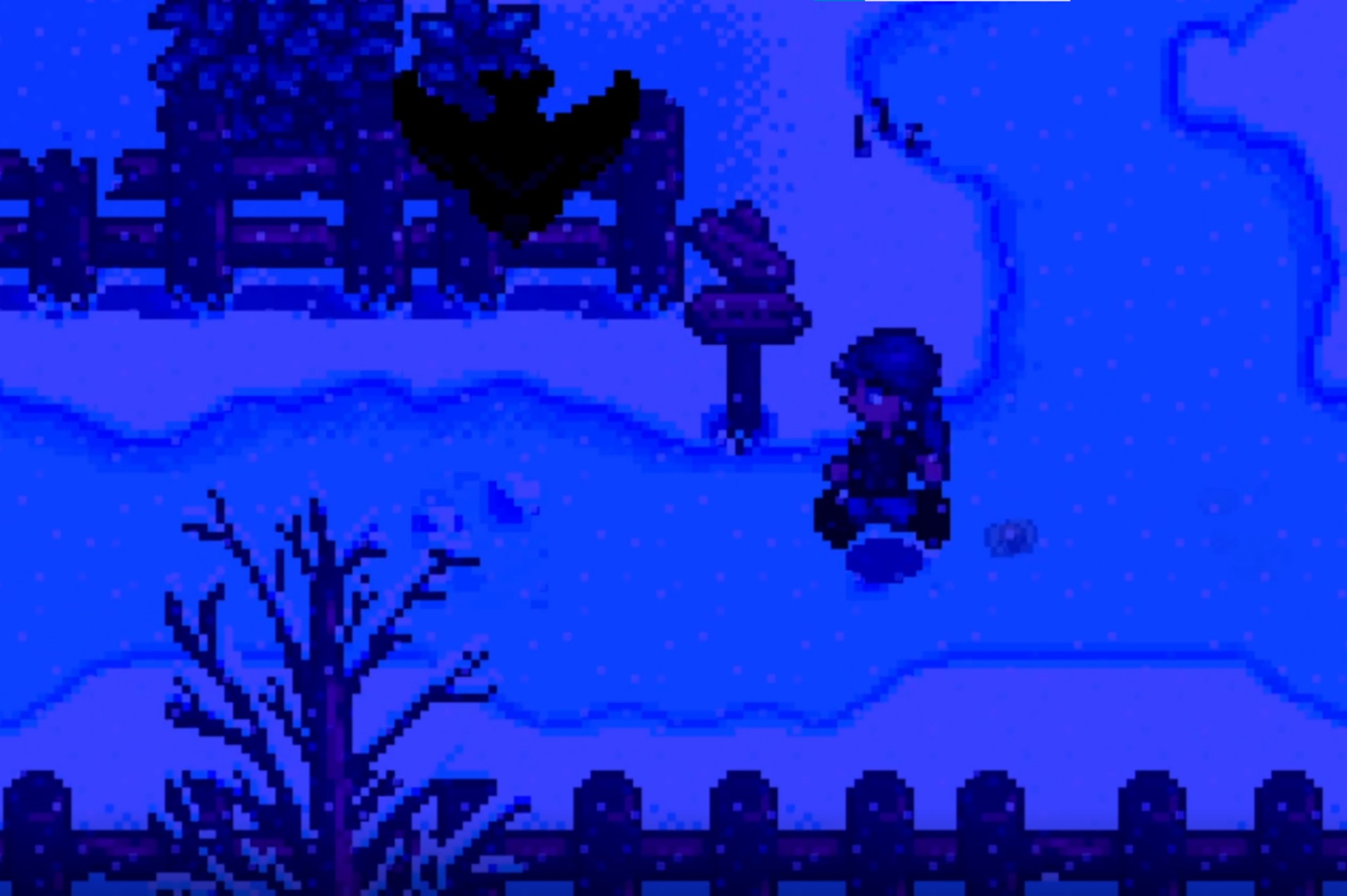 The journey back home feels longer every night. It’s snowing heavily as I run through Pelican Town, the clock already showing ten at night. This time of year, darkness descends dangerously fast, forcing me to quicken my pace. The mines, located almost on the other side of town, require me to cross the bridge, traverse the village center, and navigate all the way through the dark, snowy streets to reach Miele’s farm. Forgetting my torch makes the trip more challenging, but luckily, I have made this journey numerous times, so I know the way by heart.