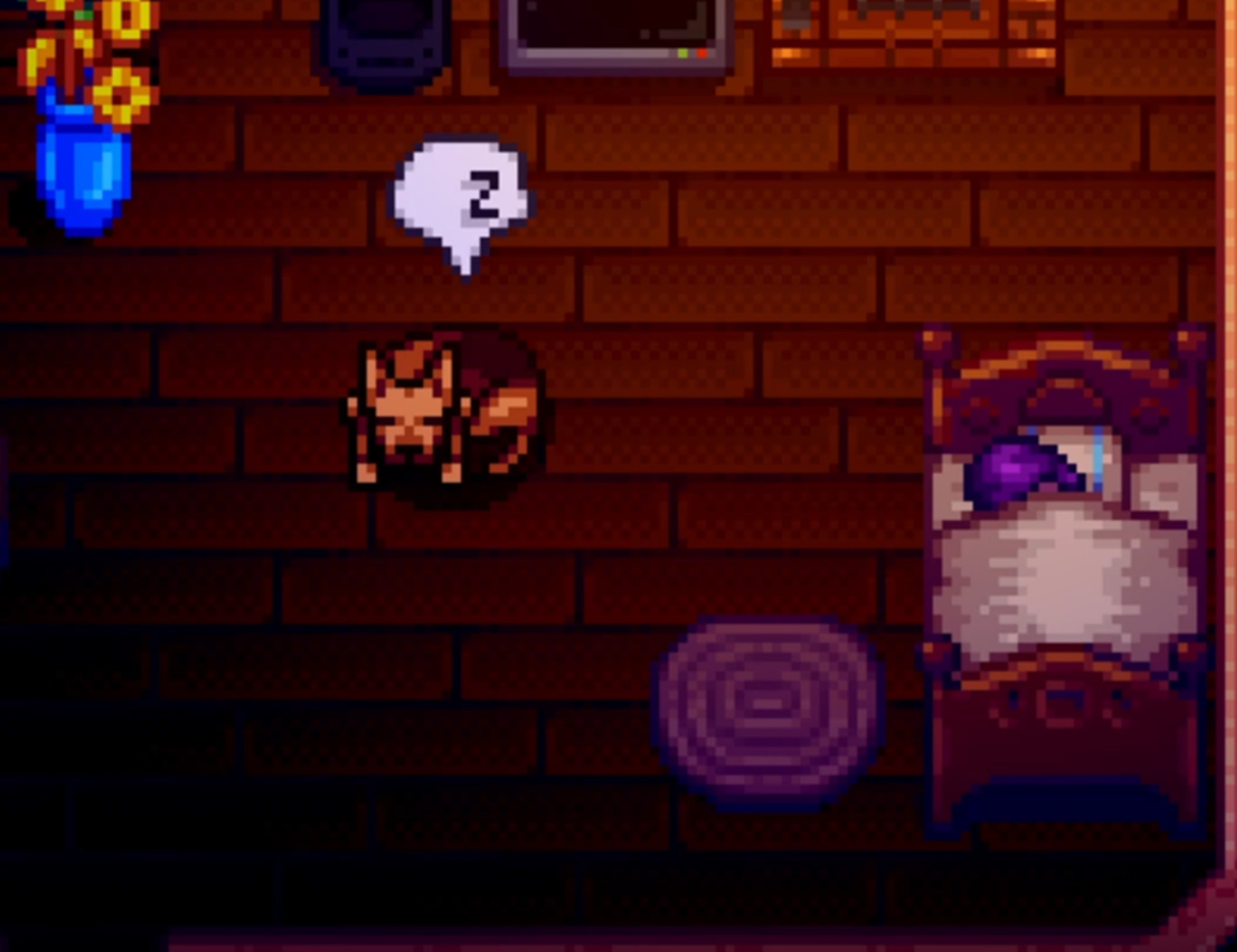 And it’s not like I don’t have money; in fact, I have a lot. I just haven’t had the chance to experience or try new things much after… well, you know. I’m not created to be a bitter character, but on this lonely night, I feel a bit of sadness surfacing. Winter isn’t easy for anyone, but here on my farm, it feels so… quiet? I crawl into my small bed, waiting for My player to put me to sleep. Only now I notice that she has decorated my home with beautiful yellow flowers, and it makes me feel hopeful.