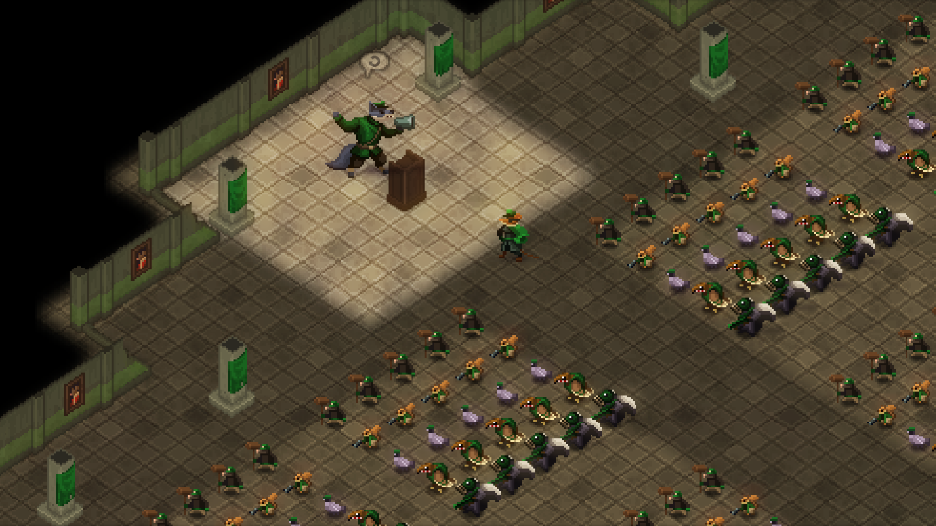 The ghastly story clashes with the pixel art animals and beautiful landscapes in a flawless manner. There is something oddly charming in the hairy cast of units marching around, even though you know the cuddly creatures are going to start waging war in a minute. On top of their pixelated forms, the units of the game are brought to life with delightfully crafted portraits that fit the tone of the game perfectly well.