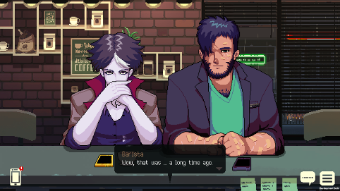 See also the cyberpunk bartending game, to which CoffeeTalk has been compared to: https://www.tuni.fi/playlab/life-in-a-dystopian-future-va-11-hall-a-cyberpunk-bartender-action/