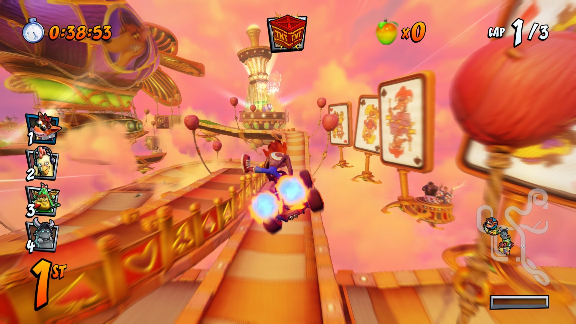 You have a wide variety of customization available for both your character and your kart. Different bodies, paintjobs and even engines with different stats to make your kart just how you want it. I personally like to switch up the skins and characters but prefer the original kart body. You open new things by winning races or buying them with the Wumpa coins you earn from completed races. You can also buy Wumpa coins with real money if you’re eager to get a new look for your character or your kart. Things you can buy from the store are, however, purely cosmetic so you won’t gain an advantage by burning your student loan on Wumpa coins.