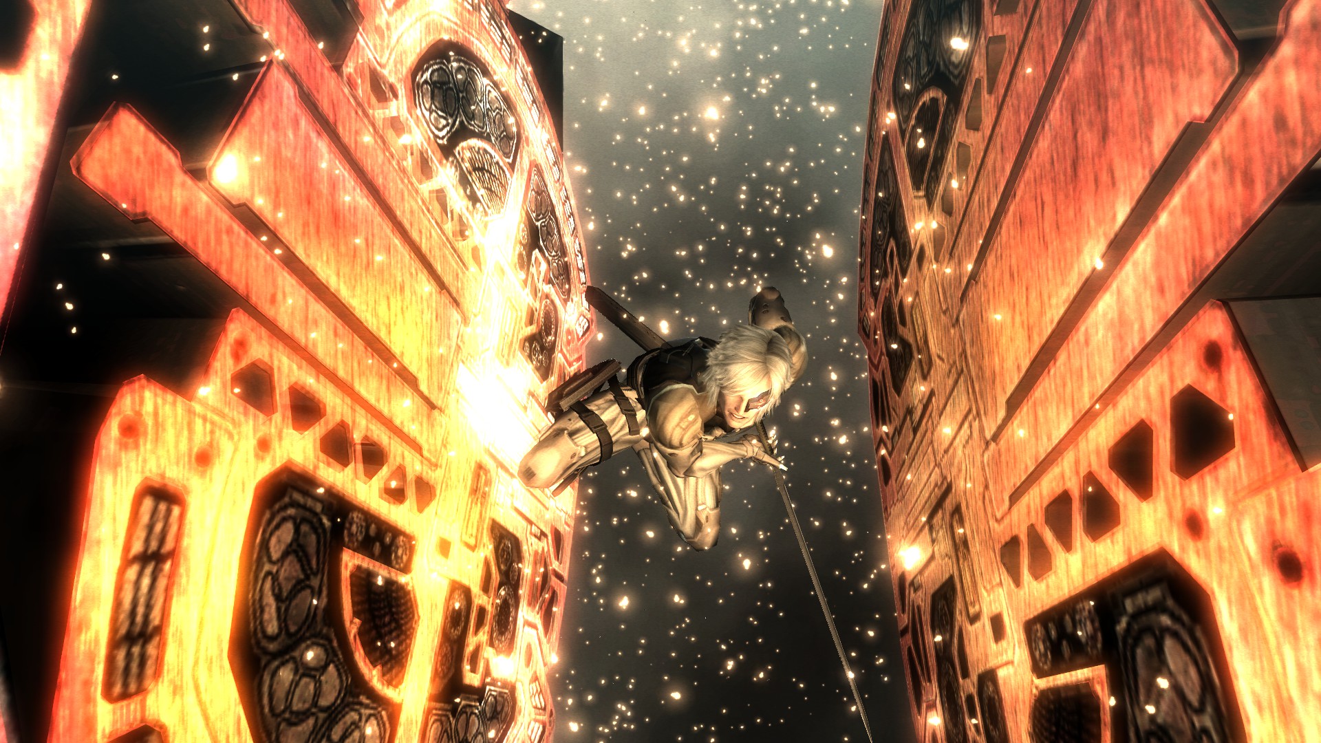 The soundtrack is done in an electronic rock/metal style with heavy drum & bass influences. Utilizing the area-specific exploration phase music – battle phase music formula present in many other action-adventure games, MGR:R’s soundtrack does its adrenaline level-raising job excellently. The soundtrack has been well-liked in general, the track “Rules of Nature” even spawning a widespread internet meme. The quality of the songs, however, is a question of personal taste and is not the only factor in the brilliance of the soundtrack in the game.