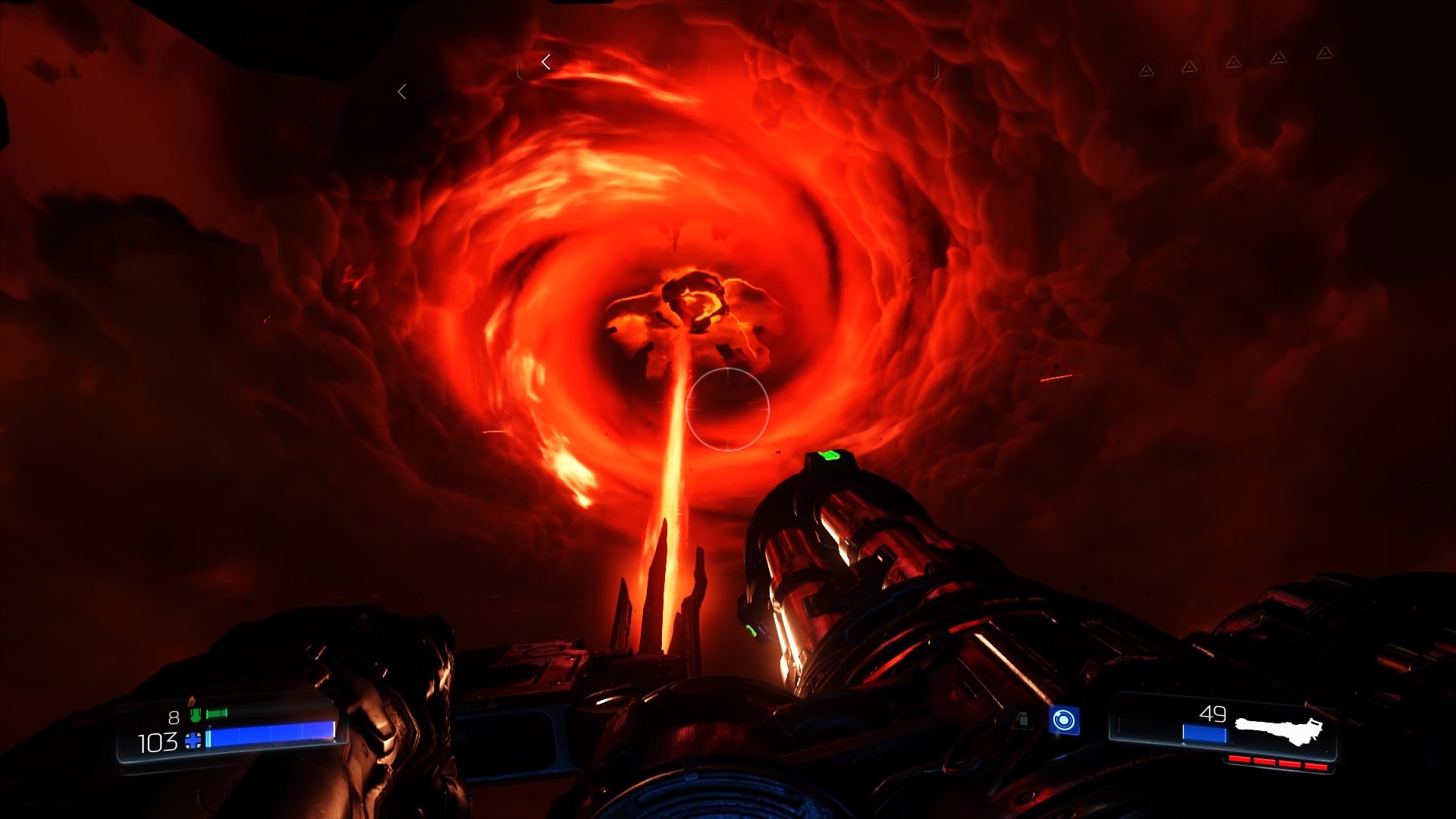 Falling off the edges of the map during hectic battles is a constant threat. Dying to environmental hazards feels extremely annoying in Doom because of the long loading times. The time it takes to get back into the action is just slightly too long, which breaks the flow of the exciting combat. Platforming is an essential part of many of the levels, and in general not much fun. Seeing a towering structure ahead of you almost always promises that the good times are over. Climbing is not very difficult, and you are usually guided by lighting, but sometimes you bump into a ceiling or a wall mid-jump and fall to your death. Fortunately, checkpoints are frequent and mostly well placed.