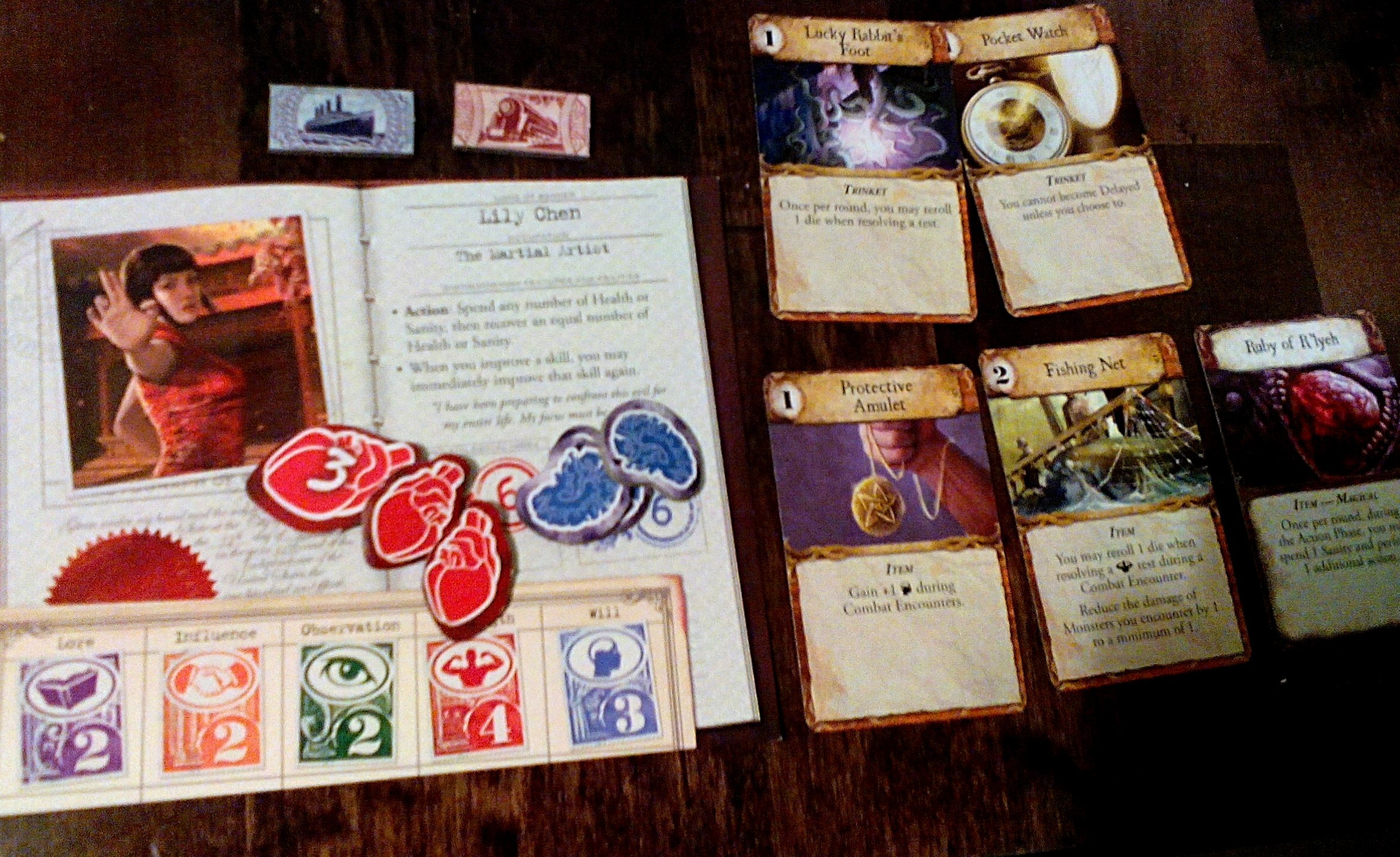 Jokaisella pelaajalla on oma hahmonsa, jonka kyvyt vaikuttavat siihen, miten hyvin hän erilaisista haasteista suoriutuu. Hahmojen erityiskykyjä pitää hyödyntää mahdollisimman hyvin, mutta sooloilla ei saa liikaa. Apuna on esinekortteja kuten aseita, loitsuja ja maagisia esineitä. Noppatuurilla on kuitenkin yllättävän iso rooli siinä, miten nopeasti asiat alkavat mennä pieleen. Jos hahmon terveys ja mielenterveys toiminnan tiimellyksessä tipahtavat nolliin, kuolo korjaa. Onneksi pelaaja saa silloin valita uuden hahmon laajasta valikoimasta.