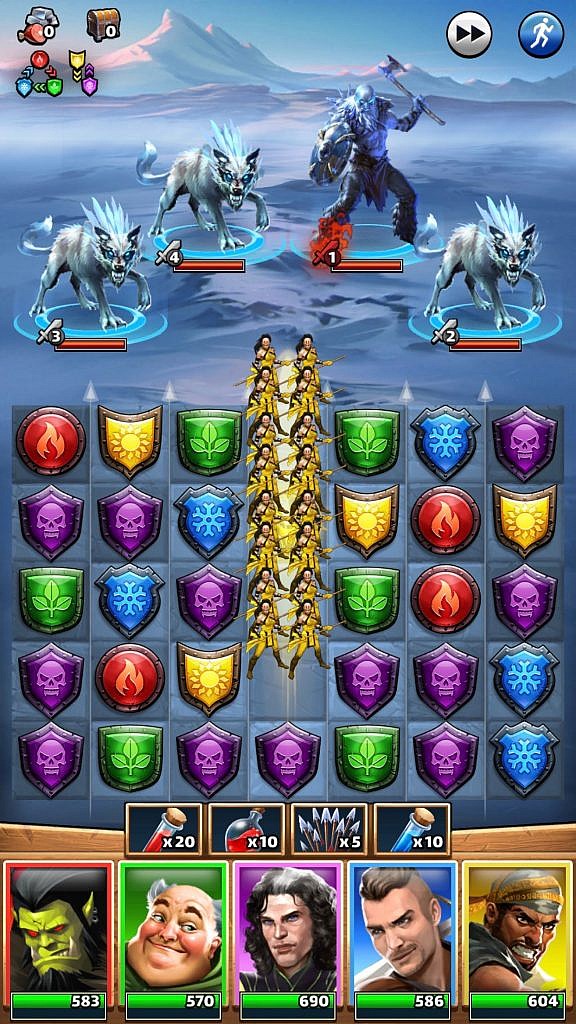 Pelissä suoritetaan kenttiä, joissa vihollisia voitetaan hyökkäämällä yhdistäen kolme saman väristä kilpeä, jotka edustavat joukkoja. Pelaajalla on joukkojen eri värejä vastaavia sankareita, jotka keräävät energiaa, kun pelaaja hyökkää saman värisillä joukoilla. Jokaisella sankarilla on oma erityistaitonsa, jota pääsee käyttämään, kun energia on täysi. Pelissä pääsee myös taistelemaan toisia pelaajia vastaan rynnäkkötehtävissä sekä liityttyä liittoumaan titaaneja vastaan. Titaanit ovat voimakkaita vihollisia, joita ei pysty tuhoamaan yksin.
