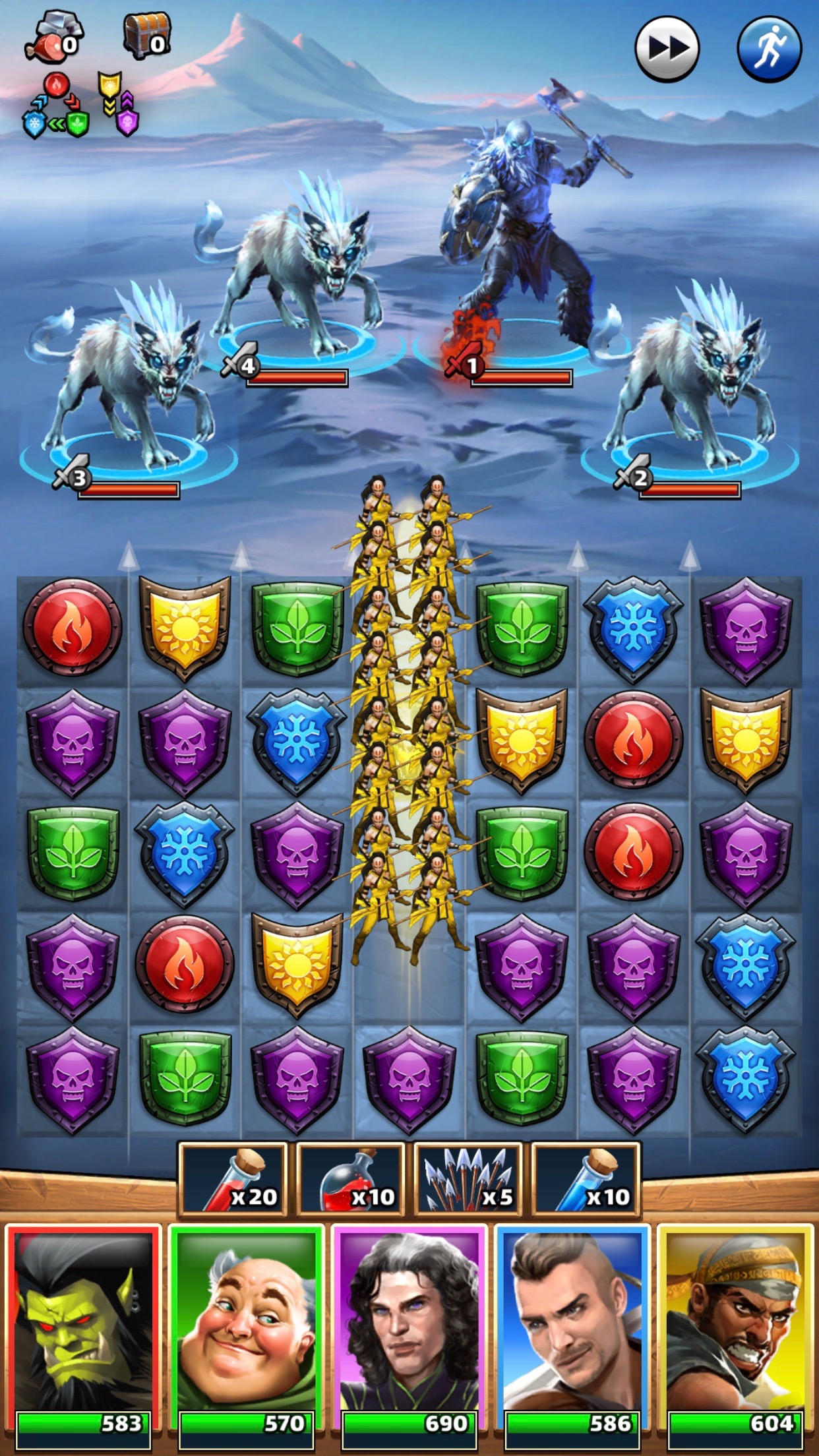 Pelissä suoritetaan kenttiä, joissa vihollisia voitetaan hyökkäämällä yhdistäen kolme saman väristä kilpeä, jotka edustavat joukkoja. Pelaajalla on joukkojen eri värejä vastaavia sankareita, jotka keräävät energiaa, kun pelaaja hyökkää saman värisillä joukoilla. Jokaisella sankarilla on oma erityistaitonsa, jota pääsee käyttämään, kun energia on täysi. Pelissä pääsee myös taistelemaan toisia pelaajia vastaan rynnäkkötehtävissä sekä liityttyä liittoumaan titaaneja vastaan. Titaanit ovat voimakkaita vihollisia, joita ei pysty tuhoamaan yksin.