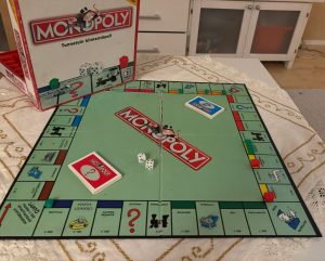 When a player arrives on a property, they can buy it or put it to auction. When a player owns a property, other players have to pay them when in the property. Once a player has the whole set of certain type of property, they can start building houses and hotels, which further raise the cost of visiting the property. There are also train roads and utilities (cannot be built on, but the more a player owns, the more other players have to pay them when they visit), and random events where a player wins or loses money, as well as jail that prohibits the play for certain number of turns. The game ends when everyone but one player is bankrupt.