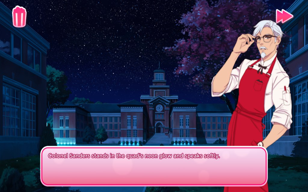 Capitalism has reached its peak. As corporations struggle to get that sweet sweet brand relatability, the results have gotten truly absurd. For example, here’s a review for KFC’s visual novel styled dating simulator.