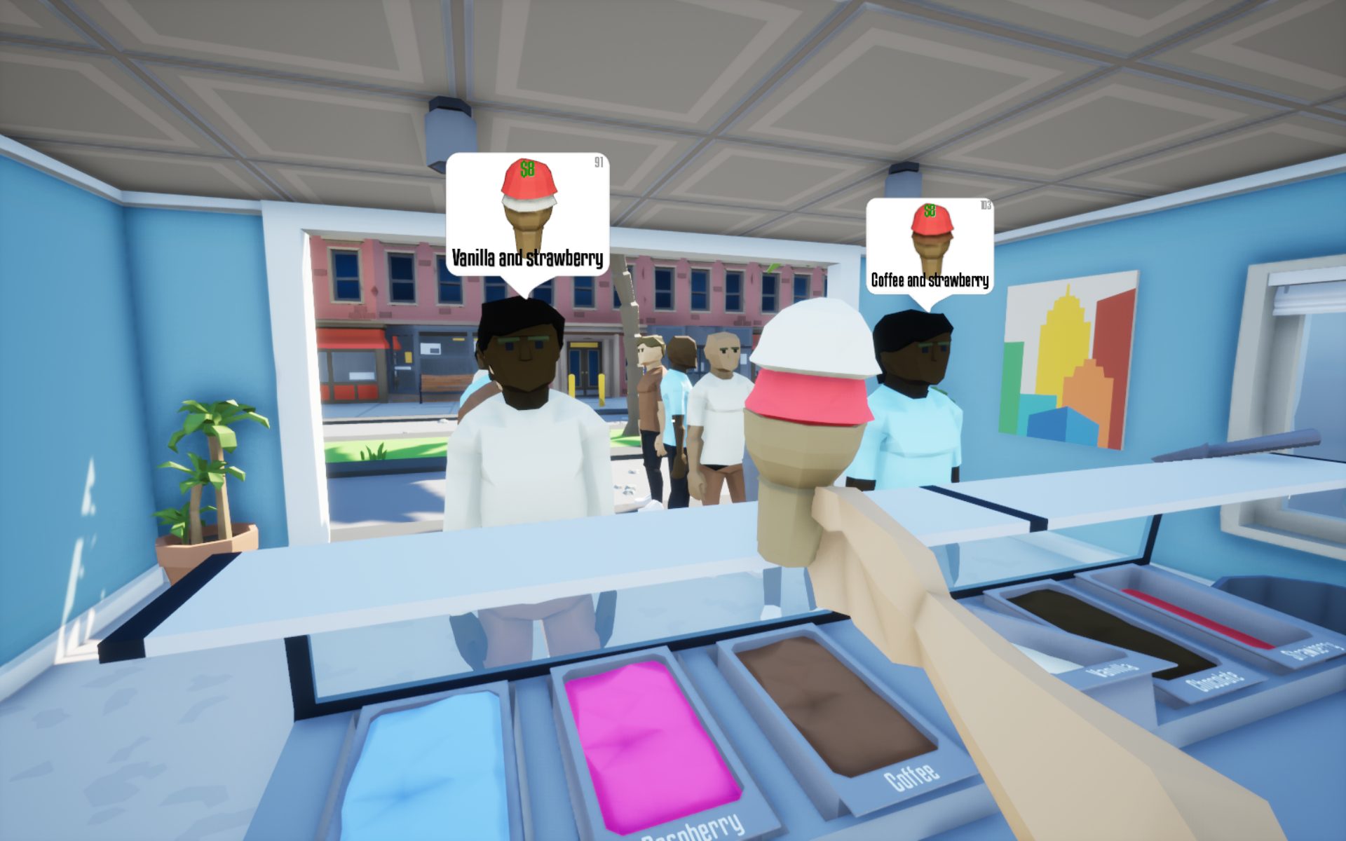 The game setting itself is small. In every restaurant, there’s a kitchen space and an area for customers. You can also go outside to unload your ordered ingredients. There could easily be more space to make the experience a bit more enjoyable, since sometimes when passing your friend, you both end up getting stuck in the doorway.