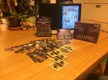 ONUV is played with cards, tokens and other objects. There are two teams: humans and Vampires. Each player has a unique role, traits, qualities and features defined by the character token they’re randomly given. The Vampires’ goal is plain survival done by manipulating the humans and driving them into suspecting each other of being a Vampire, leading them to attack each other rather than the real Vampires. The goal of the humans is to fight this propaganda, and figure out who the real Vampires are and kill at least one of them. One dead vampire and they lose, none, and they win. Vampire’s abilities include actions that do humans harm, for example biting. Similarly, human actions help their team, for example, one token makes it possible to heal a supposed vampire. Some of the characters can move the tokens around and others are traitors seeming to be on one side while belonging to the other. This creates mostly satisfying confusion and paranoia.