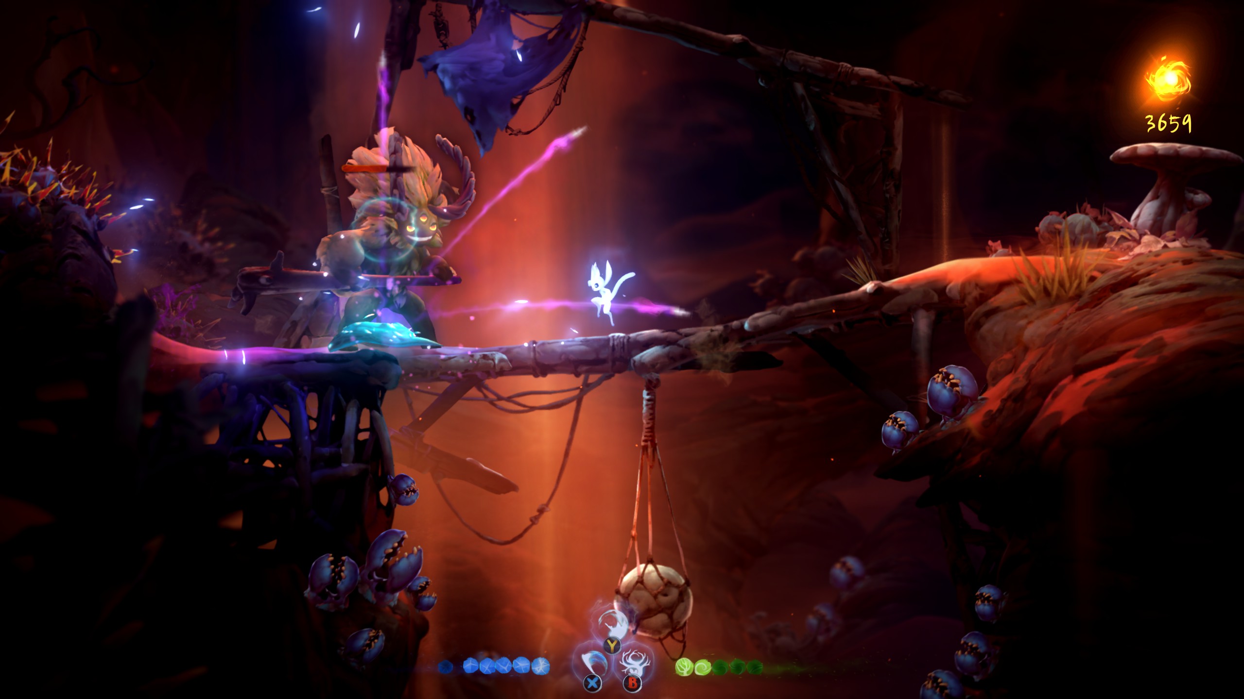 As soon as you start the game you will be met with the game’s main attractions: visuals, and music. This is easily one of the most beautiful games I have ever played. The stunning art style carries over from the last game and the developers know how to use it. They do not shy away from showing you this world in all its colorful glory every chance they get. The other half of this audio-visual experience is the soundtrack by Gareth Coker. The music in this game flows like water with the gameplay: from calm peaceful moments to intense rushes of stress and wonder. This is one of the few soundtracks that I’ve kept listening to even after finishing the game.