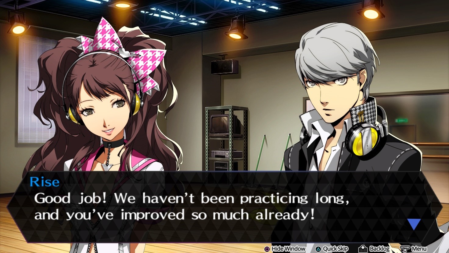 A surprising fact is that this spin-off has a canon story, meaning that the story is an official part of the series, and, for instance, characters do not forget its events. After Persona 4, a member of the friend group, Rise Kujikawa, an idol known as Risette, plans to return from hiatus in The Love Meets Bonds Festival, and her friends are going to be background dancers. However, a video of the dead idol appears on the festival website. The rumors state that whoever watches the video gets taken to a different world. The Investigation Team decides to solve the case. The story is simple but effective, as it explains the dancing and new characters. The story is a mix of cutscenes and dialogue screens, but luckily, the gameplay sections break the often long dialogue.