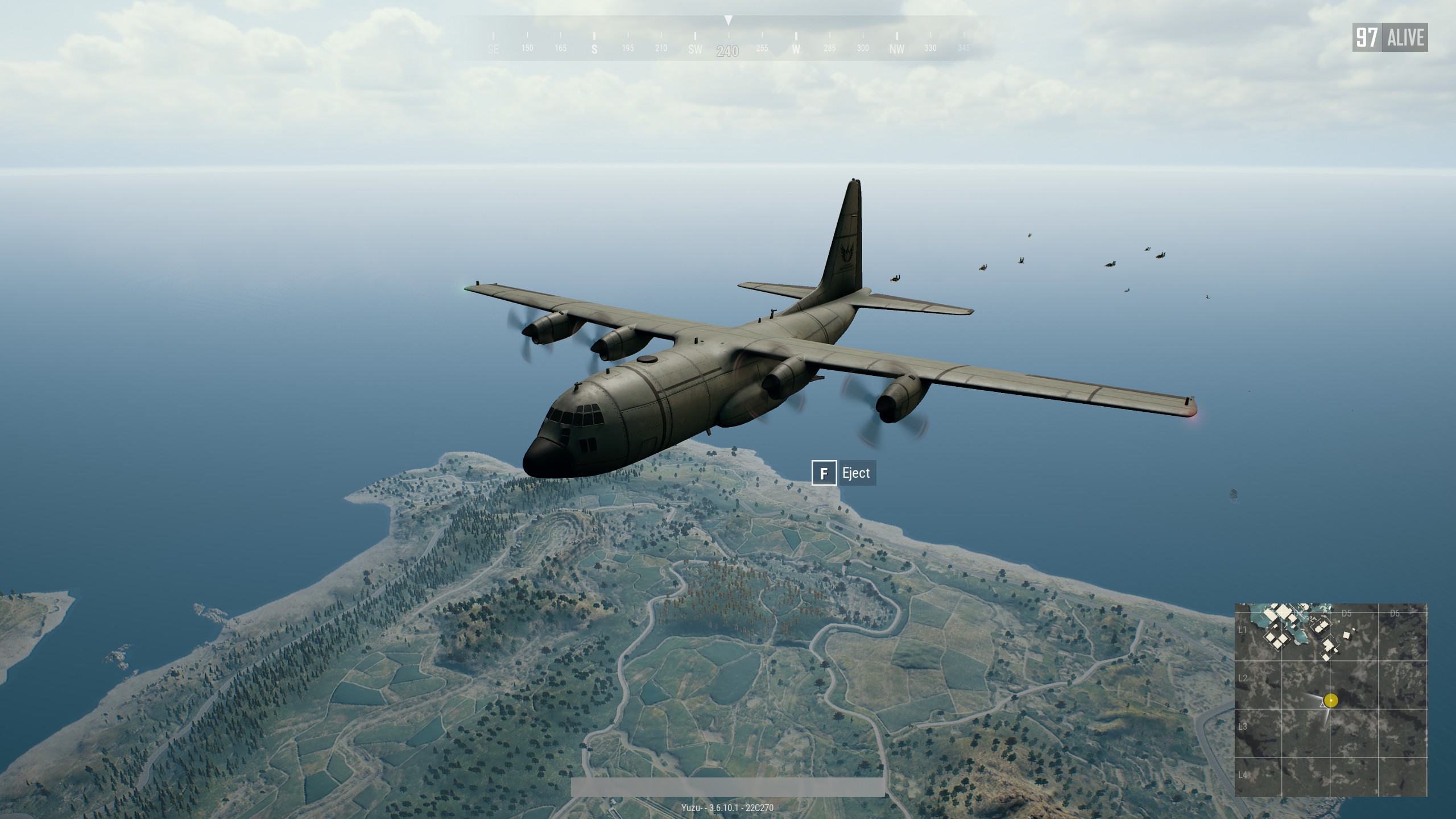 The PUBG is a free for all battle royale, where the last person, or group alive wins the game. Each game starts within a big cargo plane flying above the map, giving players option to choose when to drop out and land along the way. The two maps featured in the game are large and varied, with different landscapes, locations and buildings to explore and loot. Over time the play area shrinks, forcing players to encounter eventually.