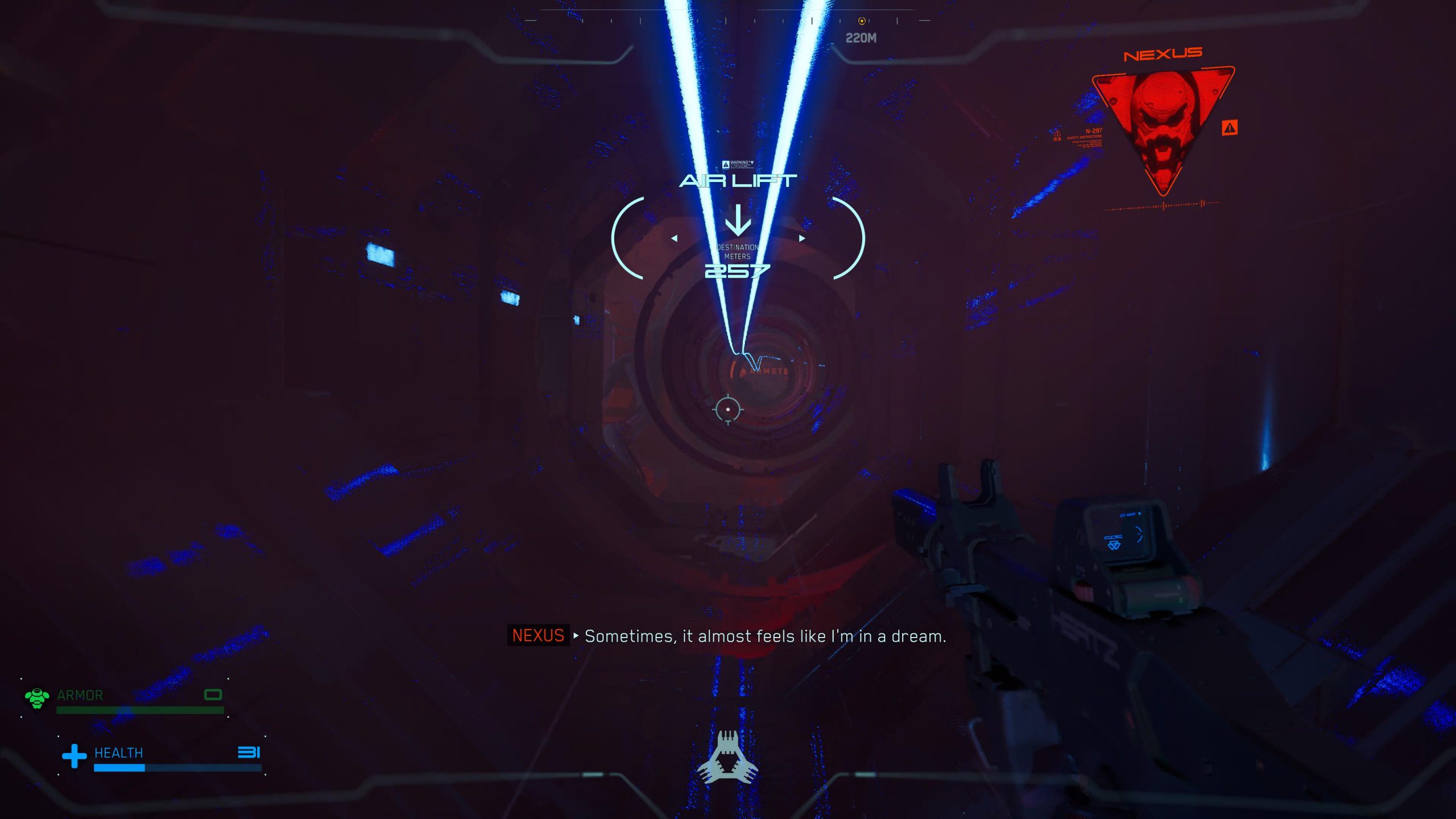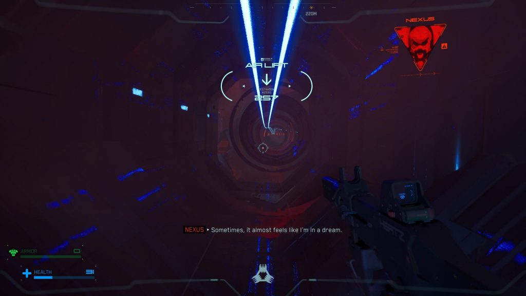 reason to shoot. The main character’s friend is the mysterious Nexus, who whispers in her