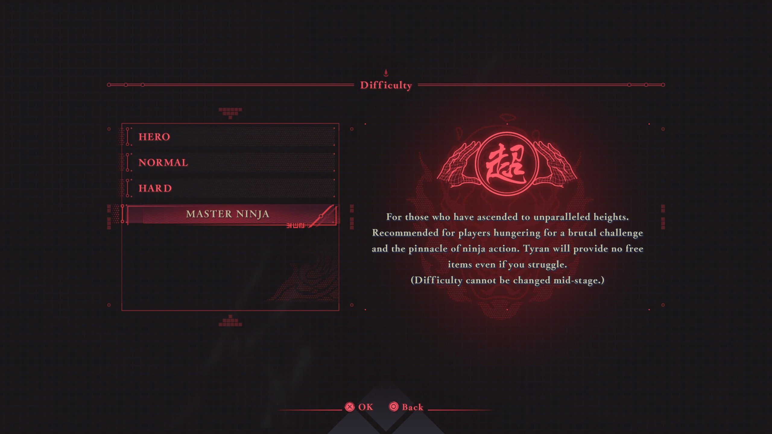 Then there is Master Ninja difficulty which remixes enemy encounters throughout the game, introducing harder enemies earlier and replacing the basic versions of enemies with their stronger variants that have increased HP values, more aggressive behaviour and more attacks. This setting also increases enemy damage so much that you will likely die in 1-3 hits from almost any enemy even with a fully upgraded HP bar. This difficulty is only unlocked after beating the game once.