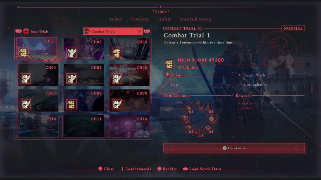 For this review I played on the base model PlayStation 5 using the performance mode which allows for 120FPS gameplay. The game runs nearly perfectly and I very rarely noticed any drops in the framerate, only seeing slight dips in performance during some Master Ninja difficulty encounters due to the larger number of enemies compared to other diffculties. My biggest gripe with performance are the load times that, while not necessarily being too long by themselves, do add up when the game already has overly long animations for things like the game over screen or intro screens when starting a combat trial.