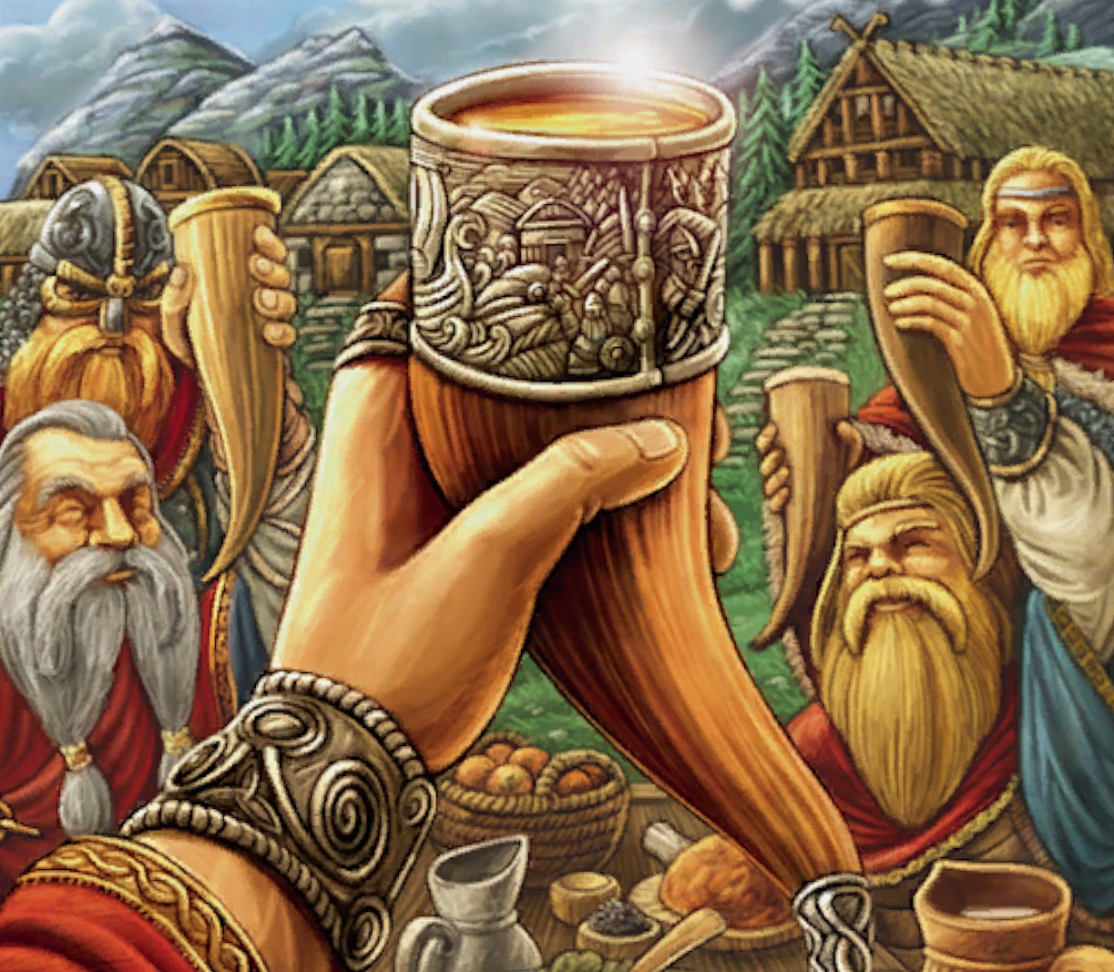 To survive, your Vikings need to eat every round, and this is achieved by allocating food items to as many open spots as your Banquet Table has. Every round you receive one additional Viking (which functions as a worker figure), increasing your actions and also the mouths needed to feed. Not every round is as bountiful, sometimes you must rely on market or trading actions to feed your Vikings properly.