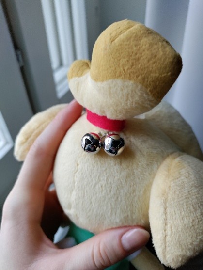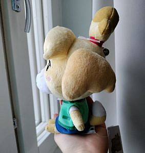 My favorite detail of the plushie, apart from its overall quality, is the pair of small bells attached to her ponytail — the bells jingle whenever I move her around. This detail gives the plushie an extra touch of life, since the in-game Isabelle has two bells in her hair that always jingle as she walks. Her name is a pun derived from the in-game currency “bells”, and her head is shaped like a bag of said currency. Thus “Is-a-bell” jingles like a bag of coins.