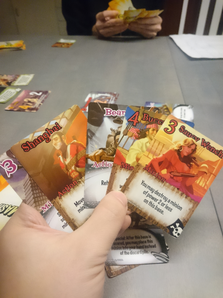 At the beginning of the game, a set of base cards are played on the table. Players try to conquer them by placing enough unit cards on the base before anyone else, but the challenge lies in trying to outwit your opponents and anticipate what kind of card combos they have lined up. There were plenty of times when I felt I would win a base, only to get the base flooded with pirates and zombies at the last-minute. On the other hand, some victory points for bases are usually awarded for the runners-up as well, which means you may want to let an overwhelming force take a base and save most of your cards for other bases.