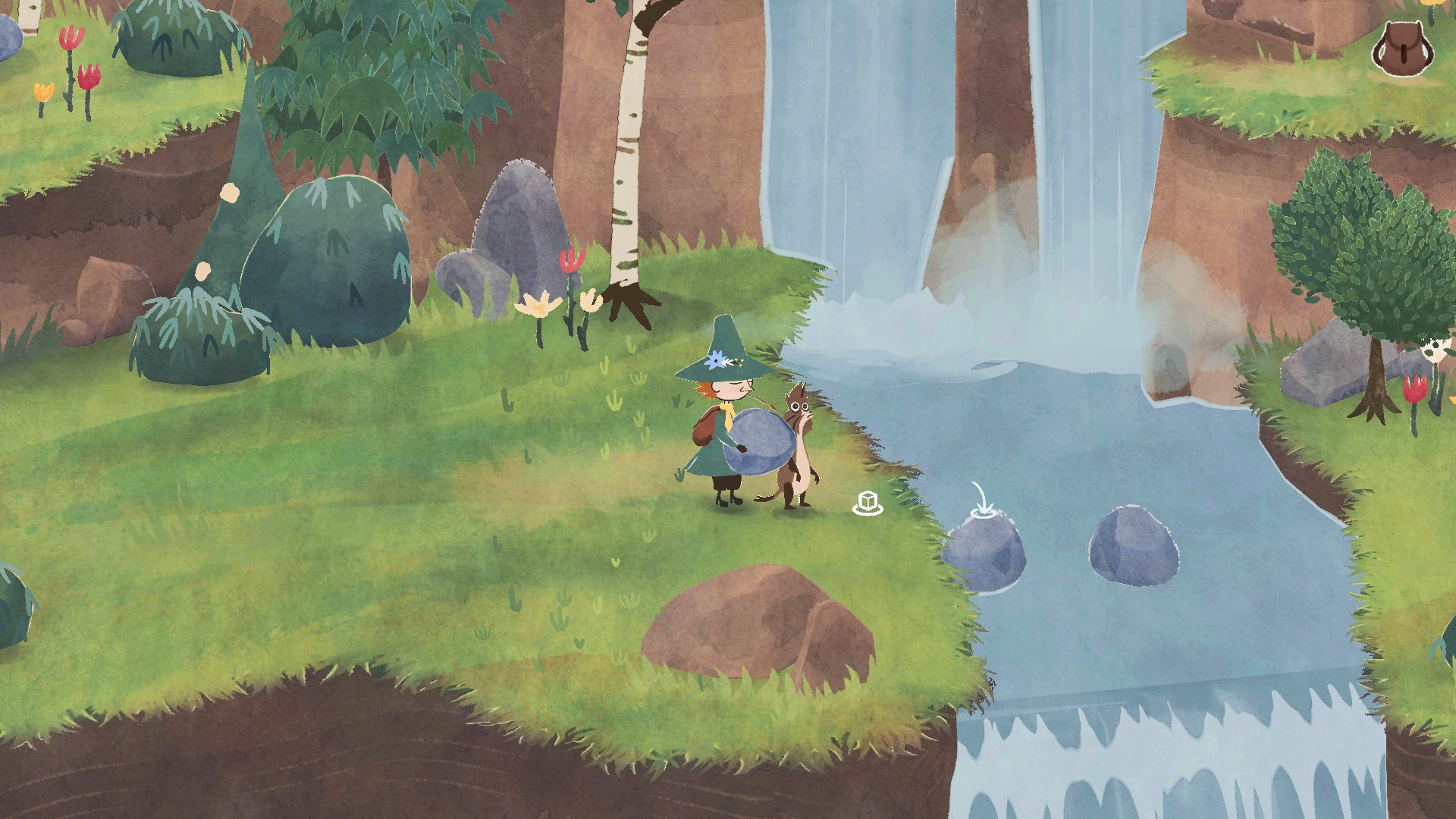 The game is centered around Snufkin, who for many represents a certain free spiritedness. He’s a restless wandering spirit who regularly makes an exit from Moominvalley on foot to escape the winter season into distant lands beyond the Lonely Mountains; a sort of proto hippie who doesn’t care about the rules or the rat race of mundane life. It’s therefore no wonder he’s one of the most beloved characters in the franchise. Returning from one of his journeys, it quickly becomes obvious that something is amiss in Moominvalley. Alas, the more revealing events are reserved for the full version.