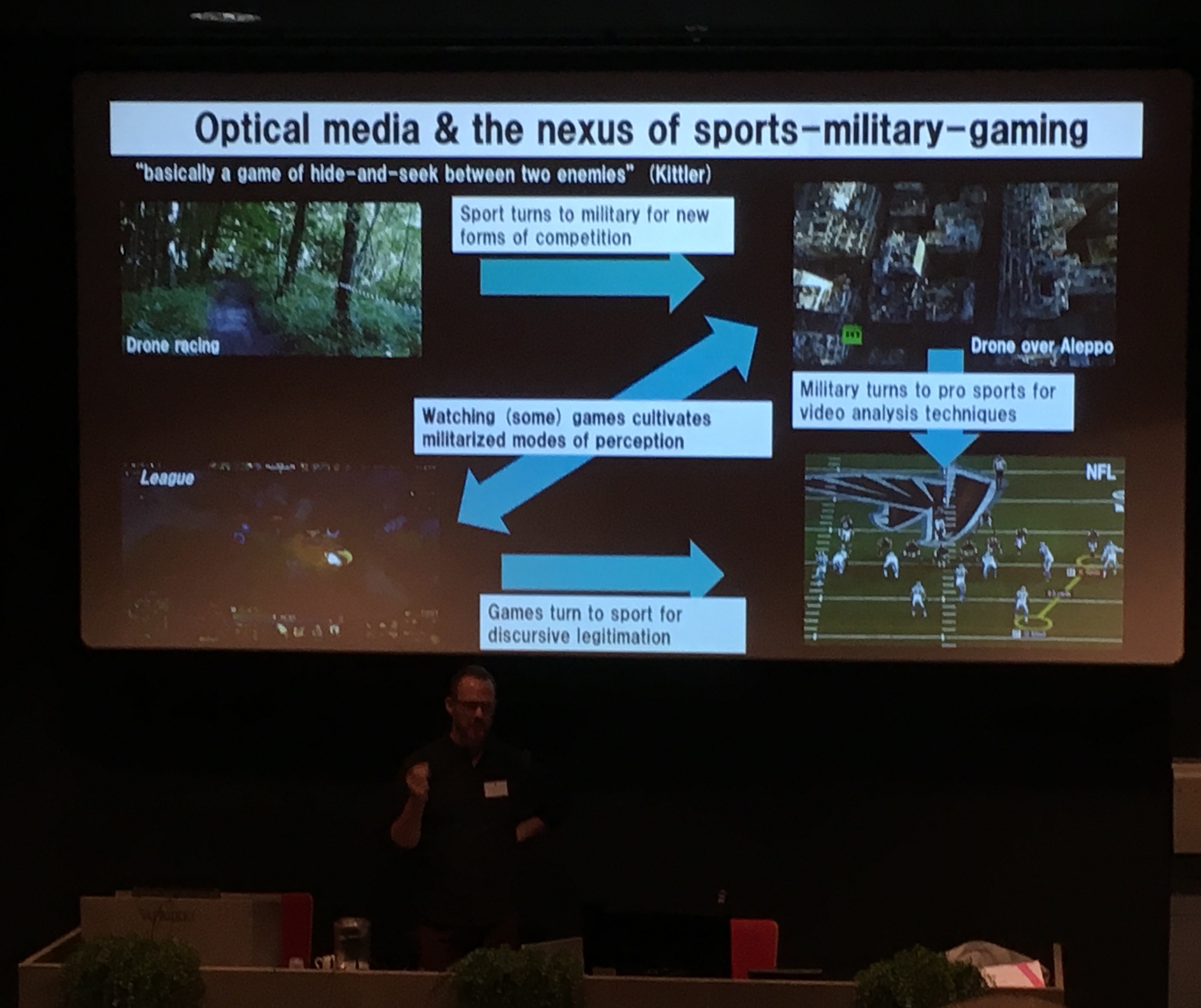 Presented in the conference were three papers from the eSports research project currently underway at the University of Tampere (http://esports-research.com). Maria Törhönen presented an overview of how the language around video sharing has been used in academic papers; highlighting how ‘stream’ had largely transitioned from a technical to a generic term, whist other basic terms such as ‘user’ and ‘viewer’ still varied in definition, and needed re-defining in the context of participatory culture. Max Sjöblom presented findings from a study taken at the Finnish LAN event Assembly (http://www.assembly.org) concerning how attendees utilised social media. A survey conducted at the event attempted to map what motivated people to spectate sports (drama, escapism, gambling etc) with what social media platforms they posted to. Although they identified that the results were inconclusive, a number of interesting patterns emerged in the data. Positive associations were found between aesthetics and Facebook, acquisition of knowledge and Reddit, social motivations with messaging services, and enjoyment of aggression with Snapchat. Joe Macey presented data from an online survey concerning gaming, esports consumption and gambling. Both a Game Addiction Scale and Problem Gambling Severity Index were applied to the data, with the results looking to find whether consumption of videogames and esports were potential predictors of gambling activity. No statistically significant relationship could be found between gaming and gambling, although a link was made between watching esports and online gambling.