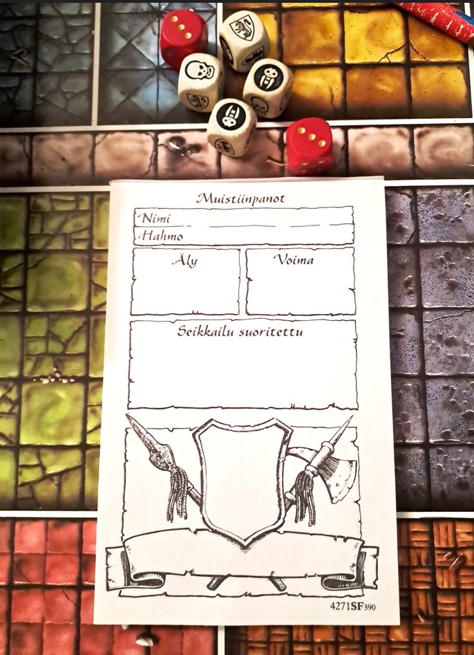 There are two regular dice that decide how much your character can move along with the combat dice. You can also write down everything that has happened to your character.