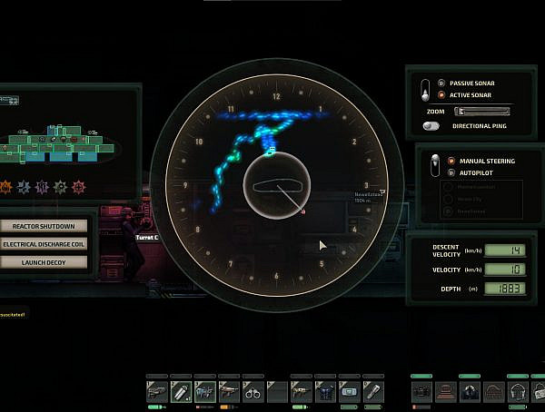 This is not a realistic-looking, realistic-playing simulation: these submarines ply their trade in two dimensions in the alien waters of Europa, and have more than torpedoes to worry about.