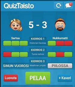 QuizTaisto on tietovisamobiilipeli, joka pelastaa liian pitkän automatkan ja hiljentää takapenkin. QuizTaiston idea on yksinkertainen -haastat pelikaverin tietokilpailuvisaan, missä vuorotellen valitaan 19 eri aihealueesta kysymyksiä. Kuuden pelikierroksen jälkeen voittajaksi julistetaan eniten oikeita vastauksia saanut pelaaja. Peli alkaa haastamalla peliin kirjautunut pelikaveri tai verkosta löytyvä tuntematon pelaajaa mukaan peliin. Haastaja saa ensimmäisenä valita kysymysten aihealueen (muun…