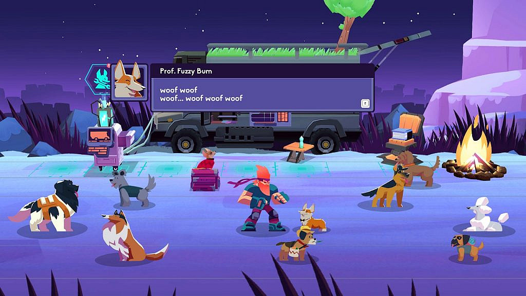 But that’s enough about humans, the real stars of the show are the dogs. At the end of most levels, Alpha will find and rescue a new dog. In a Pokémon-esque manner, the dogs are initially named after their breed, but the player can change the names as desired. This was one of the most enjoyable moments for me, as giving the dogs interesting and perfectly reasonable names such as Deathdriver or Professor Fuzzy Bum made me feel all that more attached to them. You can check on your dogs at any time on the world map, by choosing the option to camp you are taken to a screen where you can hang out with them and make upgrades to your RV. And yes, you can pet them. Arguably more important, each dog brings with it a new combat mechanic.