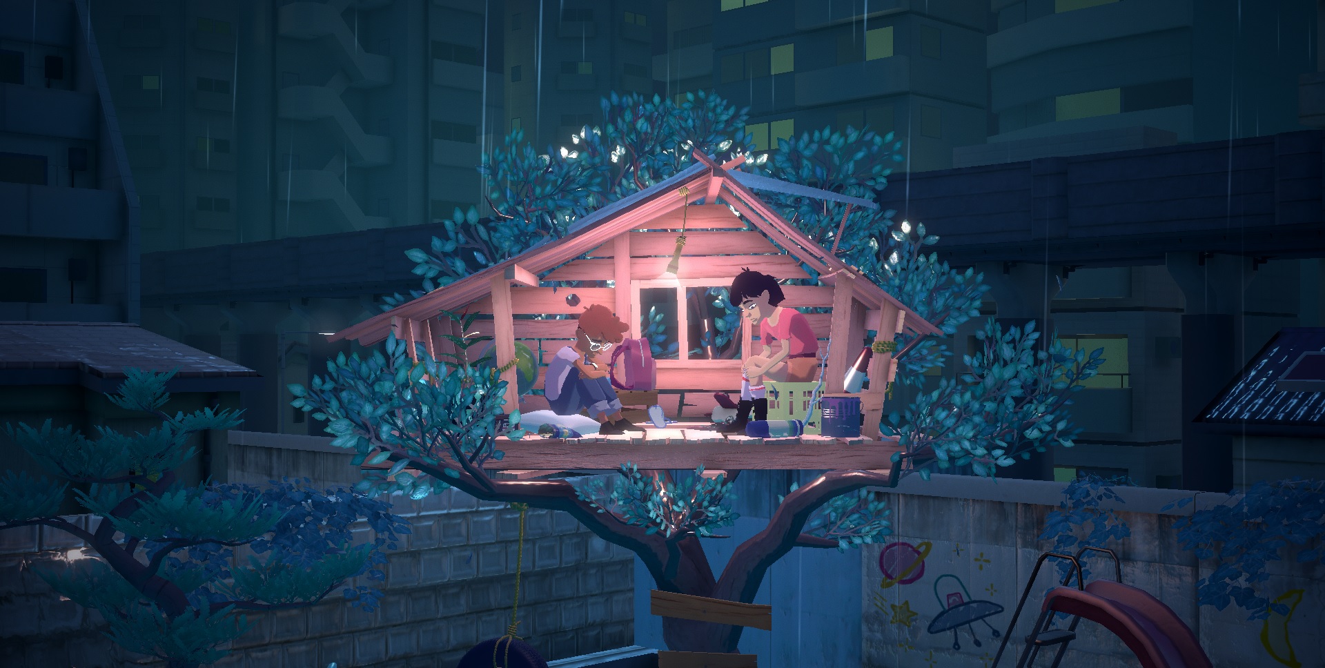 The Gardens Between, developed by The Voxel Agents and released in 2018, is a puzzle game of unusual beauty. The game begins with its two characters sitting in a tree house during a rainstorm. They are childhood friends, now in their teens, and immediately the player senses an air of melancholy about the characters and their situation, of fond, shared memories and an era drawing to a close. This hollow feeling that many experience as they reach the cusp of adulthood and realize that their childhood – a time when everything seemed simpler – is now over and will never return, fills the game. The ostensible simplicity of childhood is woven beautifully into the fabric of the game at large as our two heroes are whisked away into a dreamland of their memories. What follows is a satisfying, if somewhat brief, adventure filled with clever puzzles, luscious colors and more than a little nostalgia.