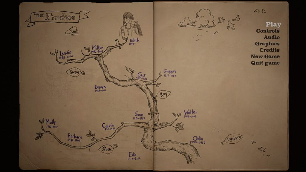 In the game, you follow Edith as she travels back to her childhood home – house, which has housed four generations of Finches. Now Edith is the only one left, as others have died in a multitude of ways, the high fatality rate attributed to the rumored family curse. As Edith walks through the house, she also walks through the lives of her relatives and forbearers, narrating their stories all the while.