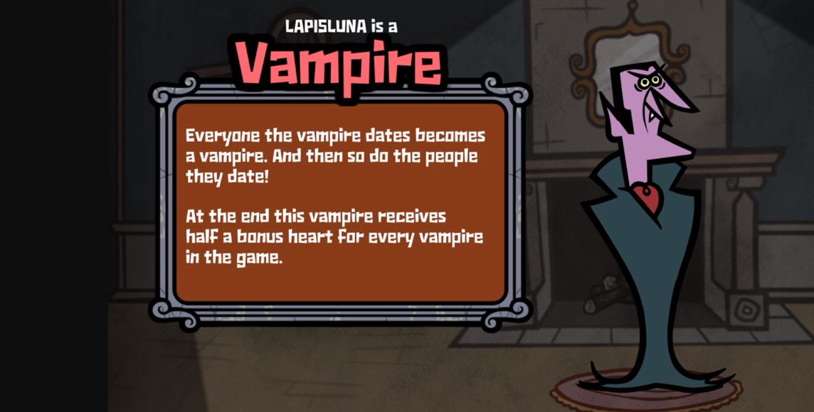 After the 3 rounds are over, your ability as a monster is revealed, and this causes you to get hearts one way or another. For example, the Witch’s hidden ability is to collect one hair for each person she manages to date. At the end of the rounds, the Witch receives an additional heart for each hair collected, that is, for each time she has managed to get a partner. The serial killer, for his part, steals two hearts from the players he has dated at the end of the game.