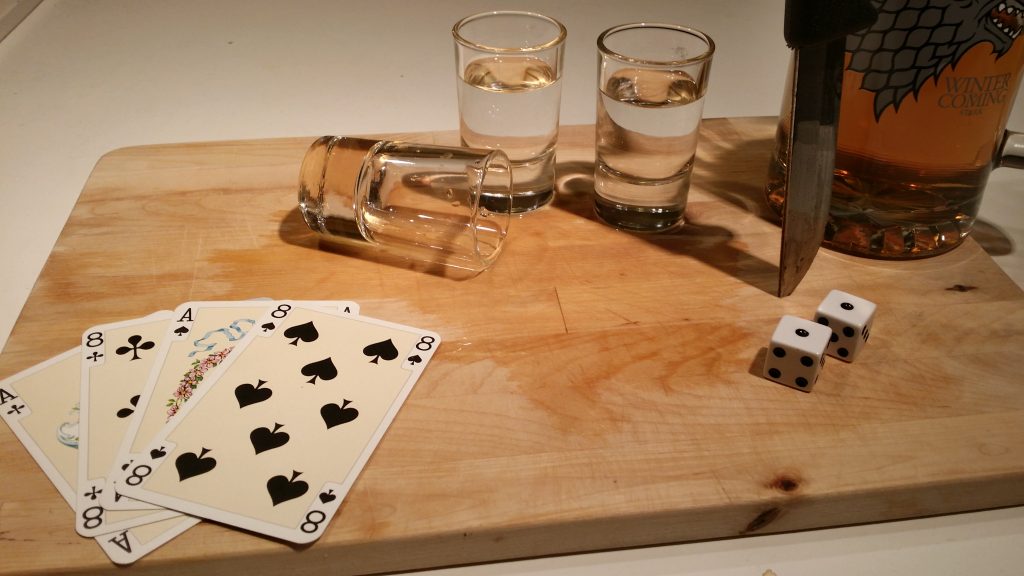 However, drinking games are interesting to ludologists for several reasons. They are related to a number of hot topics in the field of game studies at the moment. One of these is the digital fallacy, the tendency of game studies to assume digital games as the baseline. This tends to ignore the body of the player, which could be described as the very arena of drinking games. In this, they are relevant to the material turn in game studies, the focus on the elements of uncertainty that a player’s body brings to the table.