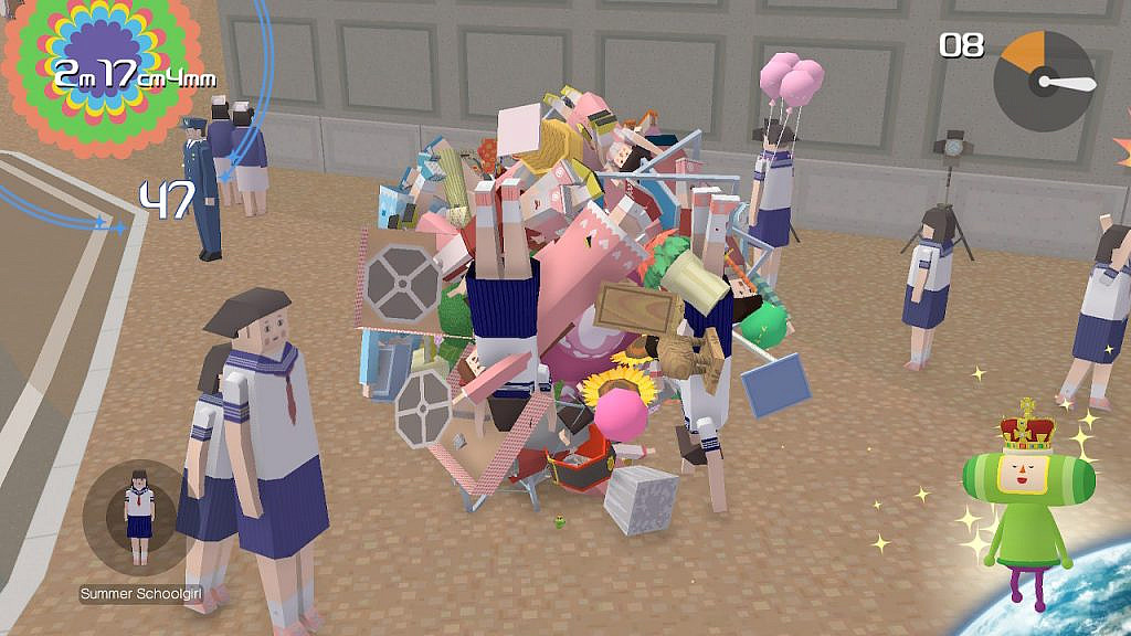 Most stages are timed, and the katamari must be rolled into a certain size within the time limit, and for me, there was never enough time! Luckily, you can unlock an eternal-mode in certain levels if the King is pleased with the katamari. In this mode you can collect every item without a time limit – so do your best!