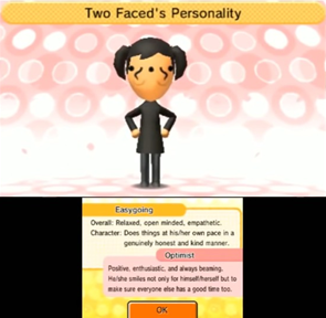 Tomodachi Life lets the players design these characters themselves and give them different personalities, which then leads to the characters creating varying types of relationships with each other, even leading to marriages and children. One character became a target for Vinny: Two Faced is one of the first islanders to be added and after seeing her perform a song on stage, Vinny decides she’s going to become his avatar’s girlfriend. This decision leads to a love triangle (or rather an unrequited love) as Two Faced starts dating Walrus – a Mii designed to look like, you guessed it, a walrus. Warlus becomes the sworn enemy of Vinny, and Two Faced lives up to her name when she ends up leaving Walrus and getting together with another islander later in the game.