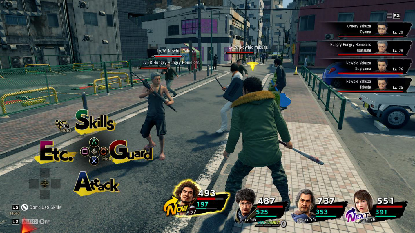 The gameplay of Yakuza: Like a Dragon is turn-based Japanese role playing game (JRPG) combat. Your team consists of up to 4 members, who can all use different abilities, attacks and items on their turn, and then it switches to somebody else. It is the classic JRPG formula, but with a more modern twist. Instead of the usual backdrop of a fantasy world, instead the game is set in the real-world equivalent of